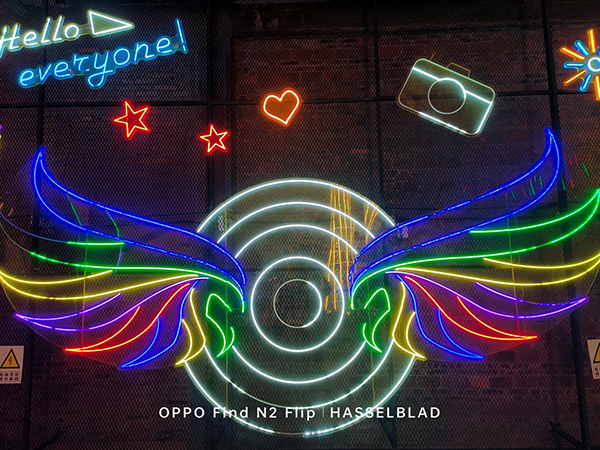 即便是面對(duì)各種霓虹燈,OPPO Find N2 Flip也能將光線壓制的很好,整個(gè)畫面看起來(lái)非常舒服。