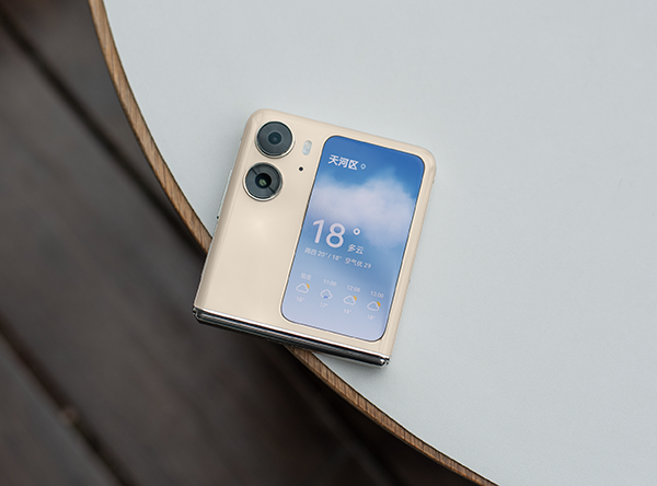 而且值得一提的是,OPPO Find N2 Flip這塊外屏的優(yōu)勢(shì)不僅僅是大而已,在交互體驗(yàn)方面也要比友商做得更好。比如我可以在不打開(kāi)手機(jī),在外屏上查看天氣、通知、回復(fù)信息等內(nèi)容,而且能夠直接通過(guò)外屏進(jìn)行自拍預(yù)覽,搭配上這顆IMX890大底主攝,照片清晰度確實(shí)會(huì)高不少。