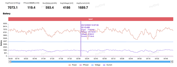 這樣的性能釋放帶來(lái)的自然是8Gen2期間機(jī)型中罕見(jiàn)的超過(guò)7W的功耗,可以看得出Redmi K60 Pro的狂暴調(diào)校真的不是吹的,在須彌跑圖的測(cè)試中不僅游戲穩(wěn)定性是當(dāng)下測(cè)試過(guò)的機(jī)型中最高的,功耗也是。