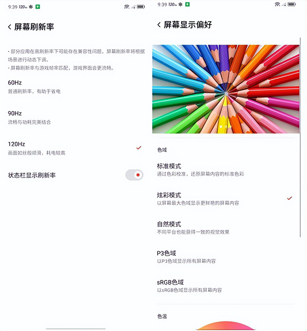 當(dāng)然,全面屏之下的屏幕素質(zhì)也相當(dāng)不錯(cuò),堪稱(chēng)行業(yè)天花板級(jí)別的屏幕。它支持最高120Hz的三擋調(diào)節(jié)刷新率、1300nit?峰值亮度、色準(zhǔn)△E< 1、10Bit色深、DCI-P3?100%廣色域、2480*1116?分辨率、1440Hz?PWM高頻調(diào)光以及DC調(diào)光雙護(hù)眼調(diào)光等多項(xiàng)頂尖技術(shù),無(wú)懼暗光、逆光、強(qiáng)光等環(huán)境,顯示效果都清晰可見(jiàn),更有首發(fā)騰訊游戲手游大作《暗區(qū)突圍》120Hz高幀模式,絲滑流暢的高幀率游戲體驗(yàn)信手拈來(lái)。