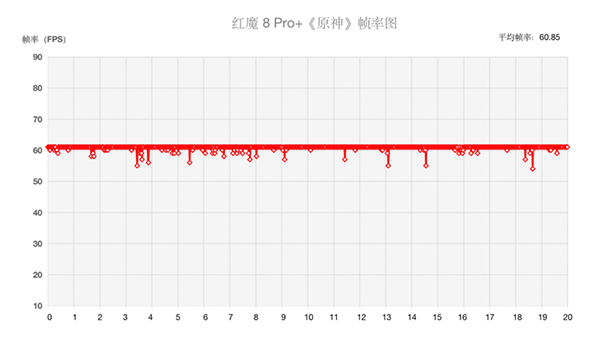 從實(shí)測(cè)的結(jié)果來看,紅魔8 Pro+跑出了一條穩(wěn)定的曲線,全程幀率能夠穩(wěn)定在60FPS左右,最終平均幀率為60.85FPS,幀率穩(wěn)定性比較出色。游戲過程中,畫面效果良好,基本沒有出現(xiàn)卡頓,流暢性方面完全不用擔(dān)心。