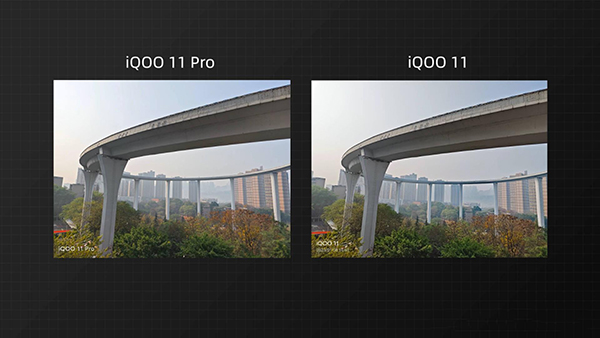 在極限暗光環(huán)境下,兩款手機(jī)都會(huì)有算法痕跡,天空略有噪點(diǎn),iQOO 11依舊是偏紅,觀感不太自然,相比之下,11 Pro觀感要舒服一些。