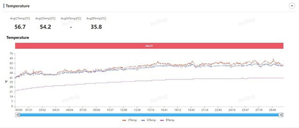 即便是采用了4642mm2 超大VC液冷,小米13在長時間游戲的情況下散熱表現(xiàn)依然不足,在完成40分鐘《原神》游戲測試后,小米13的溫度一路飆升,從測試前的41℃上升到了56.7℃,溫控表現(xiàn)的不足在讓邊框升溫非常明顯。