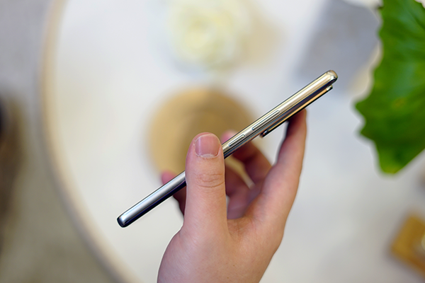 手機(jī)的邊框有弧度,是塑料材質(zhì)。正面是一塊居中挖孔直屏,屏占比非常高,而且屏幕邊框也比較窄,看起來(lái)非常漂亮。雖然是塑料材質(zhì),但機(jī)身的厚度只有7.9mm,拿起來(lái)非常輕便,而且也不會(huì)有廉價(jià)的塑料感。