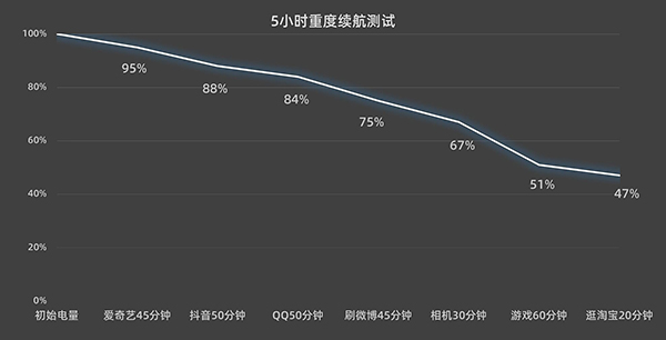 續(xù)航方面,我們使用在線5小時重度續(xù)航測試模型,對榮耀80 GT進行續(xù)航測試: