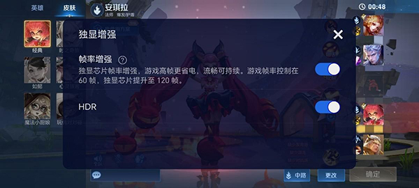 開啟幀率增強(qiáng)后,《王者榮耀》游戲原生平均幀數(shù)為60幀,幀數(shù)非常穩(wěn)定。經(jīng)過(guò)獨(dú)顯芯片插幀后,前臺(tái)顯示幀數(shù)可達(dá)120幀,畫面流暢度確實(shí)不錯(cuò),不過(guò)觸控操作的延遲感會(huì)明顯一些。