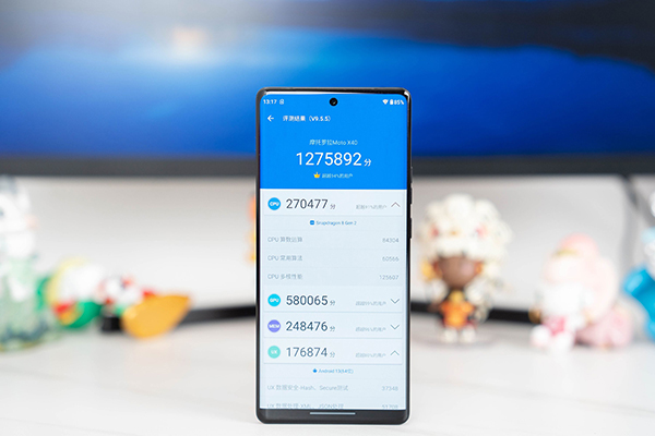作為一個手機中的SUV,除了外觀和操控外,核心的配置也是重中之重。moto X40這次搭載的是全新驍龍8 Gen2芯片,還配備了LPDDR5X內(nèi)存+UFS4.0閃存,共同組成全新一代性能鐵三角。這樣的配置,讓它在室溫條件下,跑出了安兔兔127多萬分的成績。這絕對是業(yè)內(nèi)頂尖的水平了,在實際的游戲測試中,moto X40也帶來了非常出色的表現(xiàn)。