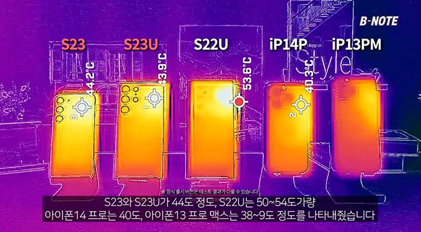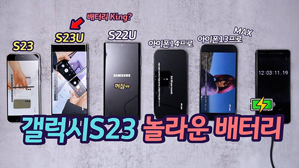 韓國媒體B-Note進行的另一項測試,對Galaxy S23 Ultra、iPhone13 Pro Max、iPhone14 Pro、Galaxy S23和Galaxy S22 Ultra進行了續(xù)航測試。