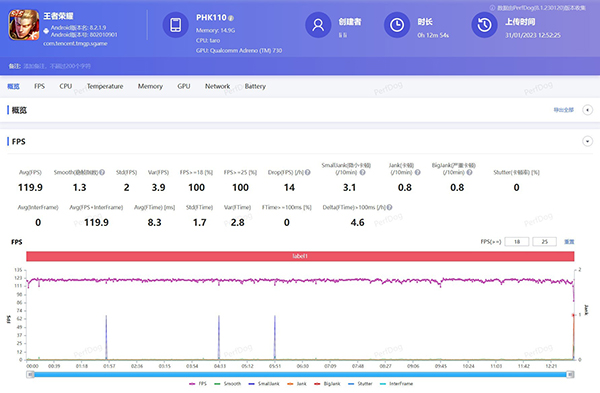 此次的一加Ace2搭載滿血版驍龍8+芯片,作為一款年度口碑最強(qiáng)芯片,采用4nm制程工藝,CPU性能和GPU圖像處理性能相比驍龍8提升10%,還能有優(yōu)秀的功耗控制,提升了各項(xiàng)性能的同時(shí),降低了發(fā)熱量,而在游戲測(cè)試體驗(yàn)上,我們選擇了當(dāng)下熱門《王者榮耀》《原神》兩款游戲進(jìn)行幀率測(cè)試。測(cè)試環(huán)境是24℃的室溫環(huán)境下,在游戲設(shè)置中將游戲畫質(zhì)、幀率全部拉滿,并采用PerfDog記錄下游戲全程的幀率表現(xiàn)情況,結(jié)果如下: