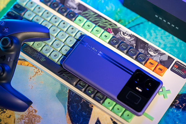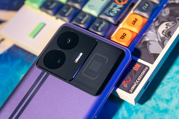 真我GT Neo5采用了潮玩透視設計,內(nèi)置了不銹鋼芯片銘牌、NFC天線、RGB燈帶、主板定位螺絲等組件。其中呼吸燈可以在充電、游戲等場景進行聯(lián)動。配色上具備了黑、白、紫三種配色