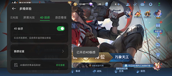 借助于X軸線性馬達,在《王者榮耀》等機型中可以開啟臨場感更強的4D振感功能,并且可以針對游戲進行不同場景的不同振感反饋。