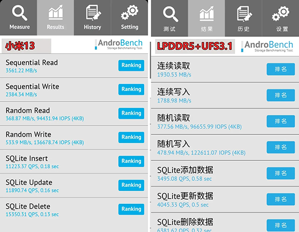 從工藝、參數(shù)和架構(gòu)來看,第二代驍龍8應(yīng)該是值得信賴的。小米13還升級到了LPDDR5x+UFS4.0的內(nèi)存組合。AndroBench實(shí)際測試數(shù)據(jù),對比上一代LPDDR5+UFS3.1在某天璣9000機(jī)型里的測試數(shù)據(jù),小米13的內(nèi)存速度還是在整體上要快出不少。