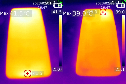 機身正面最高溫度41.3攝氏度,機身背面最高溫度39.4攝氏度。