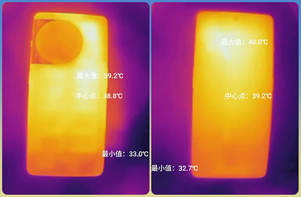 溫控方面,青島冬日室內(nèi)22°C環(huán)境下,一加Ace2機(jī)身最高溫僅為40°C,位于屏幕左上側(cè)位置,背面最高溫度為39.2°C,整體溫控表現(xiàn)也同樣令人驚喜。