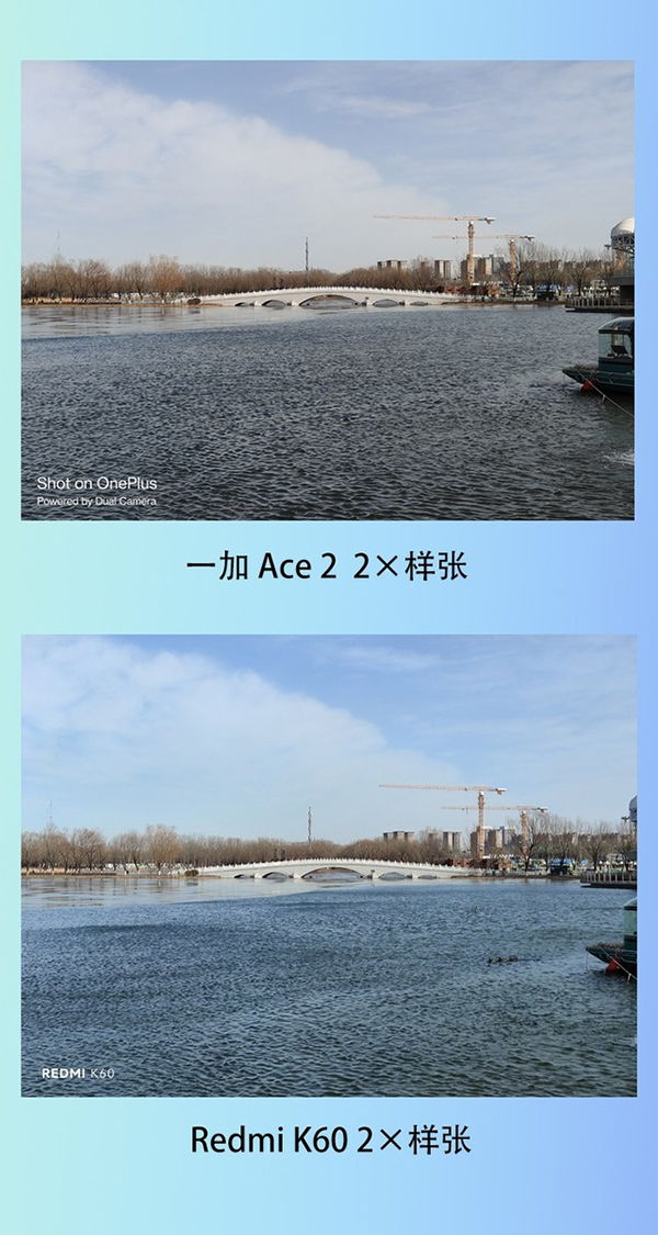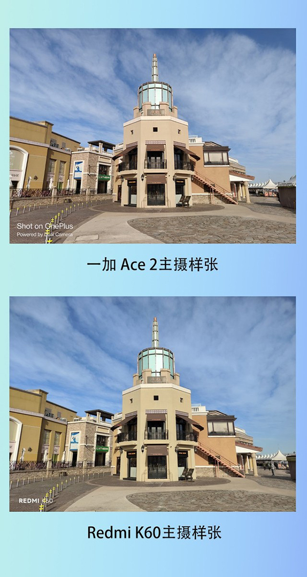 在超廣角樣張的對(duì)比中,兩款手機(jī)都沒(méi)有讓畫(huà)面出現(xiàn)明顯的畸變、暗角,可以保證優(yōu)秀的視覺(jué)觀感。但Redmi K60在采用超廣角鏡頭拍攝時(shí)出現(xiàn)了一個(gè)問(wèn)題,在畫(huà)面中出現(xiàn)了過(guò)曝的情況,在超廣角模式下對(duì)于高光的壓制還需要再優(yōu)化。相比較一加Ace2的表現(xiàn)就比較穩(wěn)定,畫(huà)面沒(méi)有過(guò)多的問(wèn)題,同時(shí)保留了畫(huà)面的暗部細(xì)節(jié)。