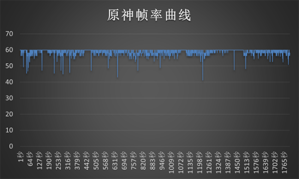 談起手機(jī)性能,《原神》自然是絕佳的“性能檢測(cè)裝置”,能否持續(xù)流暢不掉幀運(yùn)行才是根本,三星S23當(dāng)然不容錯(cuò)過,在30分鐘特效全開,60幀的高幀率模式下,通過幀數(shù)曲線可以看出,三星S23整體幀數(shù)保持得相對(duì)穩(wěn)定,平均幀數(shù)為59 FPS,即使是在頻繁切換人物釋放技能的狀態(tài)下游戲也沒有卡頓現(xiàn)象。