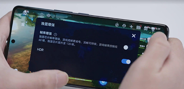 而類似于《王者榮耀》這類原生支持120幀模式的游戲,榮耀80 GT則支持“低功耗”模式。在開啟幀率增強(qiáng)后,游戲幀率便會(huì)鎖定在60幀,然后利用超幀獨(dú)顯芯片將游戲幀率提升至120幀。