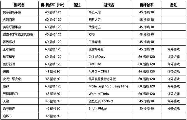 最后,我們也統(tǒng)計(jì)了目前榮耀80 GT支持“幀率增強(qiáng)”的游戲。比較難得的是,除了常規(guī)的《王者榮耀》《和平精英》《原神》以外,榮耀80 GT還支持一些在國(guó)內(nèi)相對(duì)小眾的海外游戲。