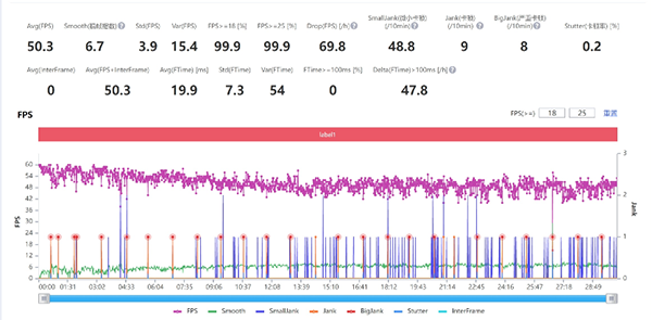 我們實(shí)際測(cè)試了半小時(shí)的《原神》游戲,在須彌城跑圖打怪,S23Ultra獲得了平均50.3fps的成績(jī),這個(gè)成績(jī)相比其他8Gen2的機(jī)型算是最差的了,但是對(duì)比S22 Ultra來說它提升巨大,S22 Ultra僅有32.2fps的平均幀率,基本就是不能玩的水平。
