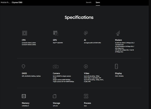 Exynos1380內(nèi)置的5G調(diào)制解調(diào)器支持毫米波和sub-6GHz5G網(wǎng)絡(luò),下載速度峰值可達(dá)3.67Gbps,上傳速度可達(dá)1.28Gbps。支持北斗、伽利略、格洛納斯、GPS、Wi-Fi6、藍(lán)牙5.2、NFC和USBType-C端口,這個(gè)芯片組將用于GalaxyA54 5G手機(jī)。