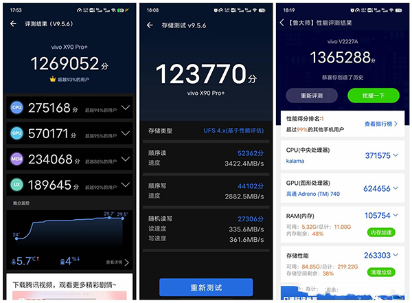 vivo X90 Pro+首發(fā)了驍龍8Gen 2處理器,也就是第二代驍龍8,這款芯片基于臺(tái)積電4nm制程工藝,具有高達(dá)3.2GHz的主頻,可提供出色的計(jì)算和圖形處理性能,采用1+2+2+3四叢集架構(gòu),性能提升了35%,GPU性能提升了25%,搭配LPDDR5X+UFS4.0,擁有Cortex-X3的Kryo超大核,主頻可達(dá)3.2GHz,安兔兔跑分可以達(dá)到129萬+。