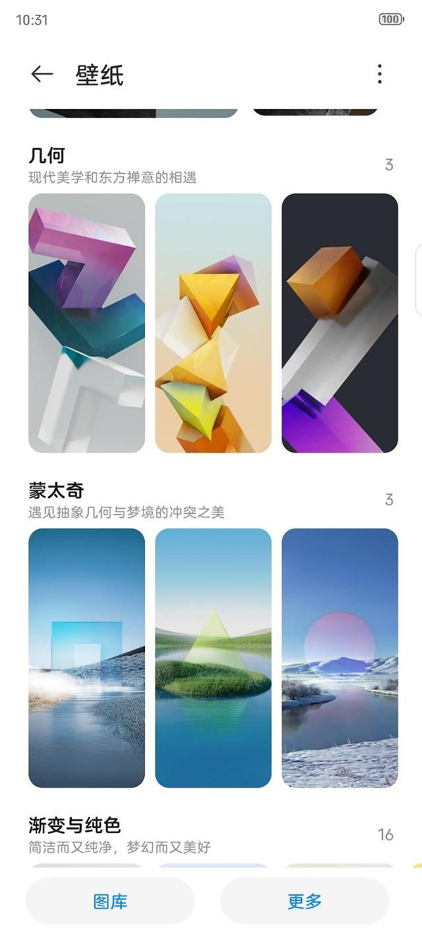 如果你喜歡更換手機(jī)壁紙,那壁紙取色就非常適合你:用戶(hù)在更換一張壁紙后,系統(tǒng)會(huì)根據(jù)壁紙的色調(diào),自動(dòng)生成多套不同的顏色樣式,整個(gè)系統(tǒng)界面配色自動(dòng)隨之變化,讓整體的觀感風(fēng)格保持一致,不存在突兀感。