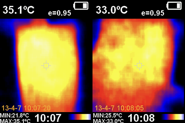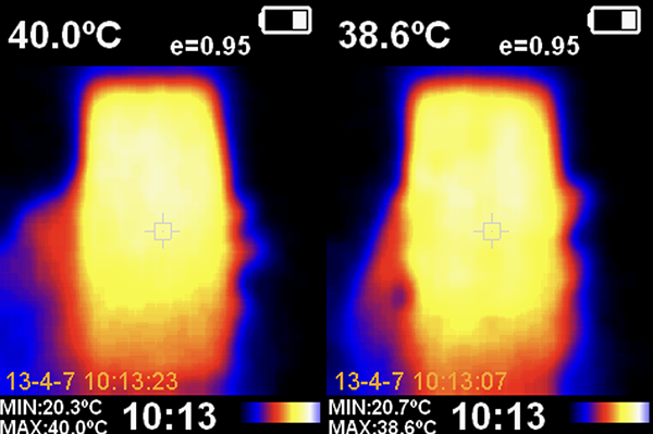 《王者榮耀》左機身正面溫度,右機身背面溫度