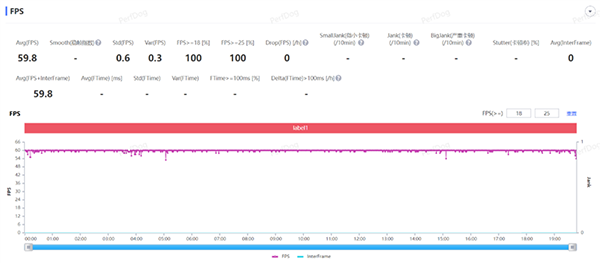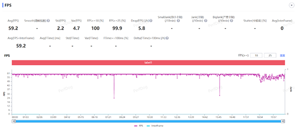 不過20分鐘的原神手游,平均幀率能夠維持在59.2FPS,也算比較不錯的水平。