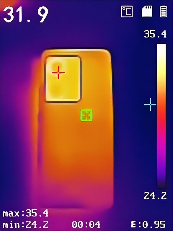 除了第二代驍龍8平臺(tái)的關(guān)系外,還因?yàn)榕葋哯50擁有多維立體散熱系統(tǒng)。大面積VC、以及金剛石導(dǎo)熱凝膠等,高達(dá)十層的散熱材料,散熱面積大,散熱速度非常快,自然在玩游戲的過程中也感受不到溫度明顯升高的跡象了。從上面溫度儀的數(shù)據(jù)就能看出,在《原神》玩了約半小時(shí)后,最高溫度僅為35.4℃,機(jī)身后背握持之處僅為31.9℃。