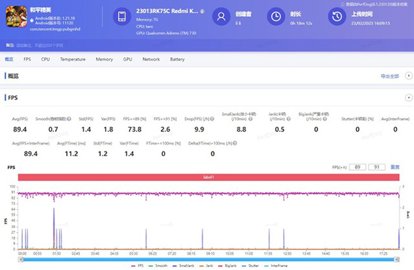 接下來是《和平精英》,同樣是半小時(shí)左右,真我GT Neo5依舊平穩(wěn),平均幀率為89.7幀,紅米K60也不錯(cuò),平均幀率也達(dá)到了89.4幀,吃雞完全沒有壓力。