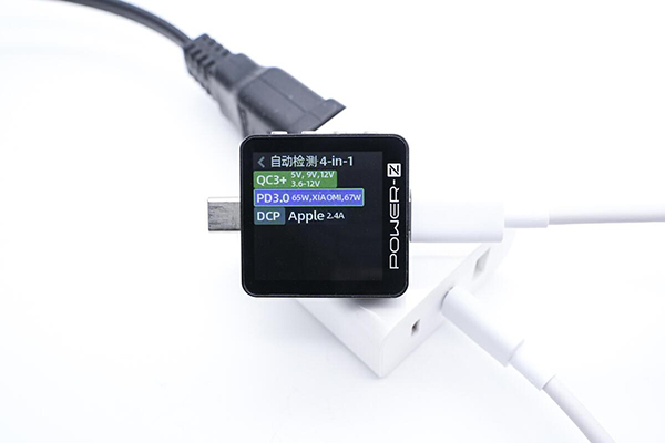 另外使用 POWER-Z KM003C測試儀測得中間的USB-C端口支持QC3+、PD3.0、DCP、Apple 2.4A等充電協(xié)議,以及小米67W私有快充協(xié)議。