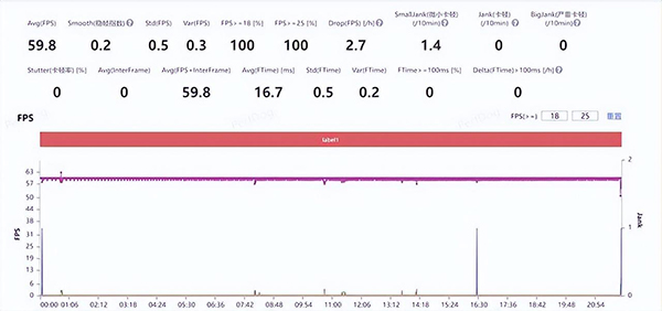 可以看到,在《和平精英》測試中,iQOO Neo7 SE的平均幀率達(dá)到了59.8fps,全程都處于接近滿幀的狀態(tài),整體游戲體驗十分流暢。