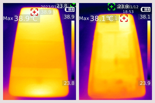 溫度方面,機(jī)身正面最高溫度38.9攝氏度,機(jī)身背面最高溫度38.1攝氏度,發(fā)熱區(qū)域在攝像頭區(qū)域,雙手握持沒(méi)有明顯的發(fā)熱。