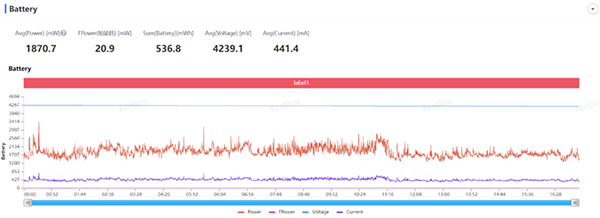 平均功耗則達(dá)到了3.74W,比王者榮耀高出了約0.14W。