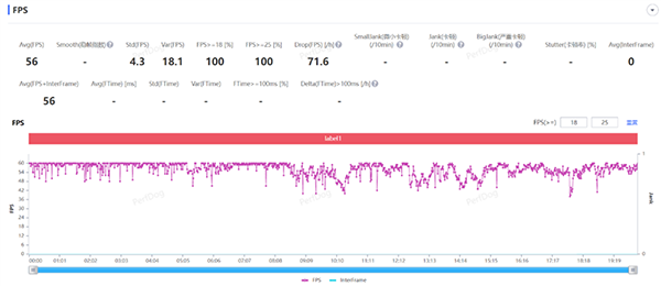最終平均幀率維持在了56FPS,平均方差達(dá)到18.1。