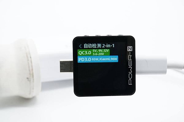 使用 POWER-Z KM003C測(cè)得USB-A端口顯示QC3.0、PD3.0以及 Xiaomi 96W私有協(xié)議的快充協(xié)議。