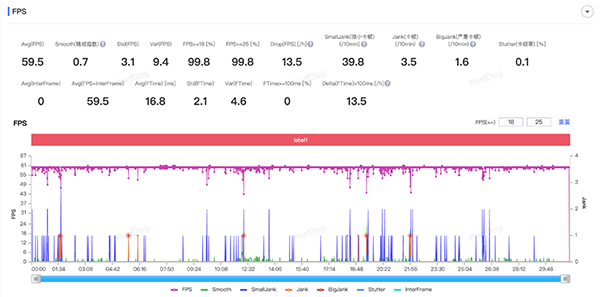 我們也對榮耀Magic5 Pro進(jìn)行了實(shí)際游戲場景的測試,畢竟都已經(jīng)是全新的旗艦平臺了,我們的測試場景也就直接“拉滿”,選擇了《原神》,在半小時(shí)的高強(qiáng)度運(yùn)行之后,我們得到了下面的這張幀率圖: