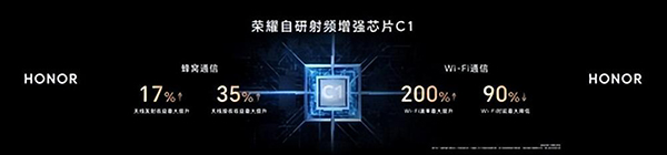 榮耀手機(jī)一直在網(wǎng)絡(luò)方面是有不斷的創(chuàng)新的,也給用戶帶來了體驗(yàn)相當(dāng)不錯的網(wǎng)絡(luò)穩(wěn)定性,像這次的榮耀Magic5 Pro,也是在網(wǎng)絡(luò)上進(jìn)一步優(yōu)化,并且還配備一枚自研的射頻芯片C1,專門用來增強(qiáng)手機(jī)通信能力,可以榮耀在網(wǎng)絡(luò)方面也是下了功夫的,通過信號增強(qiáng)再加上全新優(yōu)化的調(diào)諧算法,讓天線接收性能提升了35%,發(fā)射性能提升了17%,大幅度提升了弱信號覆蓋下的通信體驗(yàn)。