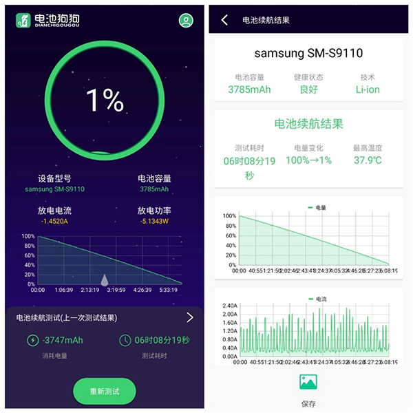 而對于手機的續(xù)航,我們使用專業(yè)續(xù)航測試工具——電池狗狗進行測試。