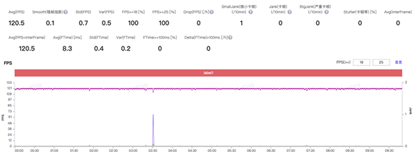 《王者榮耀》極高幀率、超高分辨率、極致畫面,幀率可以說是穩(wěn)穩(wěn)地一條直線,一局游戲下來平均幀率120.5FPS,整機(jī)功耗5.22W,機(jī)身溫度最高40.4℃。