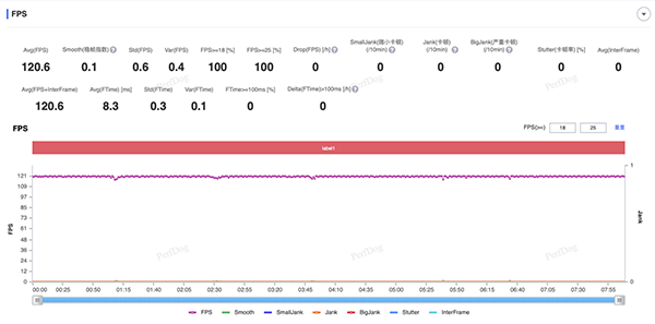 最后一看幀率,我徹底傻眼了……卡頓0、微小卡頓0、卡頓率0、穩(wěn)幀指數(shù)0.1、平均幀率120.6FPS,炸場(chǎng)了兄弟們……這是我測(cè)試眾多機(jī)型里第一臺(tái)平均幀率超120FPS的手機(jī),努比亞Z50 Ultra性能之強(qiáng),可見一斑。