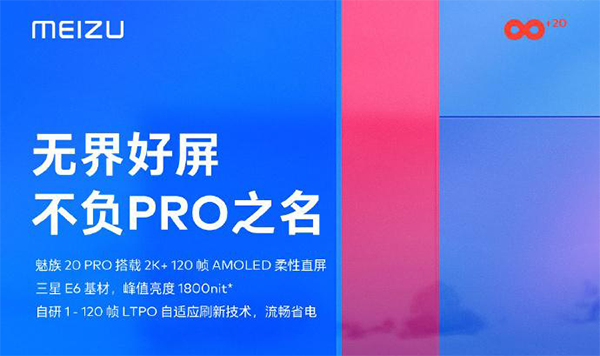 魅族20 Pro搭載2K+120幀AMOLED柔性直屏,采用三星E6基材,峰值亮度1800nit,自研1-120幀LTPO自適應刷新技術,流暢省電。