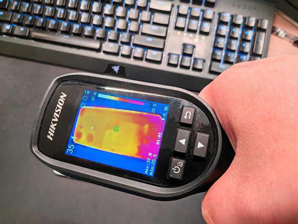 游戲運(yùn)行過程中,整機(jī)功耗4.18W,機(jī)身最高溫度39.5℃(如下圖所示,標(biāo)紅十字為機(jī)身溫度最高處),手感溫潤,絲毫沒有發(fā)熱感覺。
