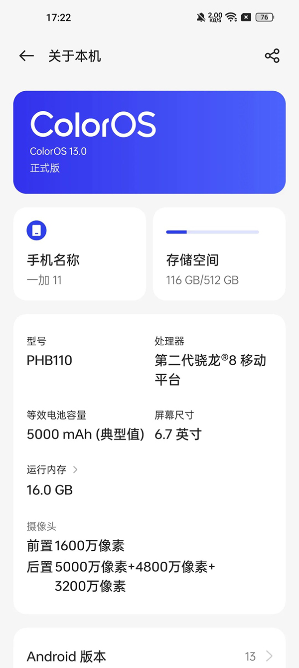核心性能方面,一加11搭載第二代驍龍8處理器,這款芯片基于臺積電4nm制程工藝,AnTuTu跑分成績高達(dá)135萬+,內(nèi)置LPDDR5X內(nèi)存和UFS4.0閃存,流暢使用不會卡頓,最高16GB內(nèi)存和512GB存儲,使用三五年都沒有問題。