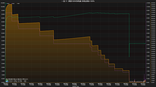 接下來,就帶大家來看一下這款一加11的充電表現(xiàn),手機(jī)電量消耗完畢后,將手機(jī)與充電器放入25℃的恒溫箱中,接通電源,并記錄數(shù)據(jù)。