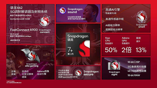 就在今天下午高通發(fā)布了全新的第二代驍龍7+移動平臺,高通稱這款芯片為,“驍龍史上最強7系平臺”,采用臺積電4nm工藝,性能大幅提升,堪稱鎖頻版驍龍8+。