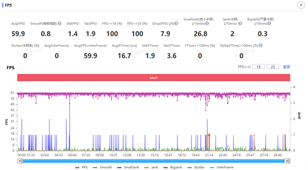 最高畫質(zhì)下《原神》須彌城跑圖30分鐘平均幀率可以達(dá)到59.9fps