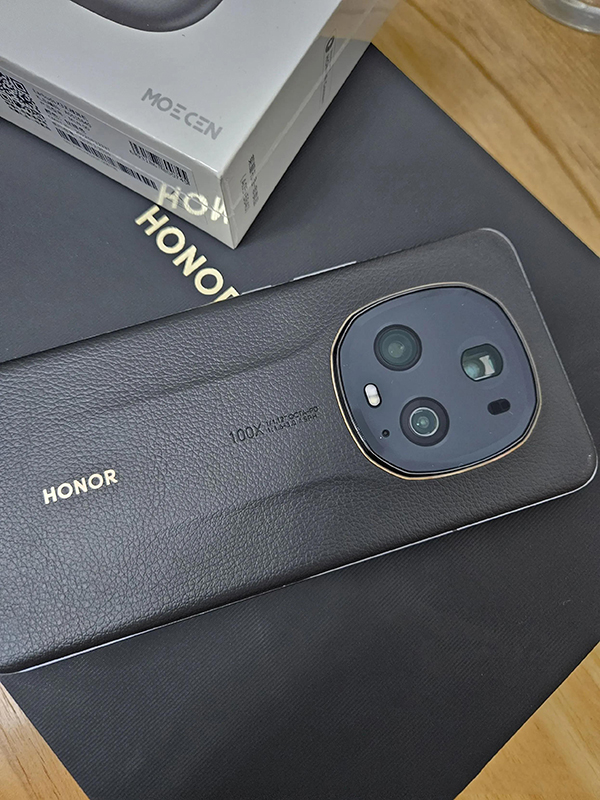 尤其是全新的榮耀Magic5至臻版采用了星輪三攝結(jié)構(gòu),整齊劃一的排列方式看起來辨識度很高,同時相機鏡片采用了棱形曲面玻璃設(shè)計,這塊玻璃相比上一代機型看起來具有更高級的質(zhì)感,在燈光照射下散發(fā)出強烈的美感,結(jié)合素皮機身,不僅辨識度高于上一代機型,而且質(zhì)感也有明顯升級。