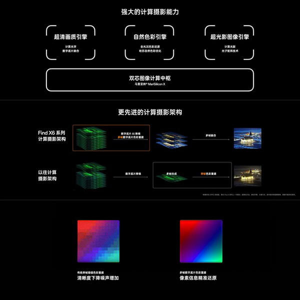 OPPO Find X6 Pro后置攝像頭模組采用了超光影影像系統(tǒng),共有三顆主攝鏡頭,其中大底長焦鏡頭配備了5000萬像素IMX890大底傳感器,支持懸浮棱鏡防抖,感光面積高達(dá)1/1.56和大多數(shù)旗艦手機(jī)的主攝感光面積相當(dāng)。