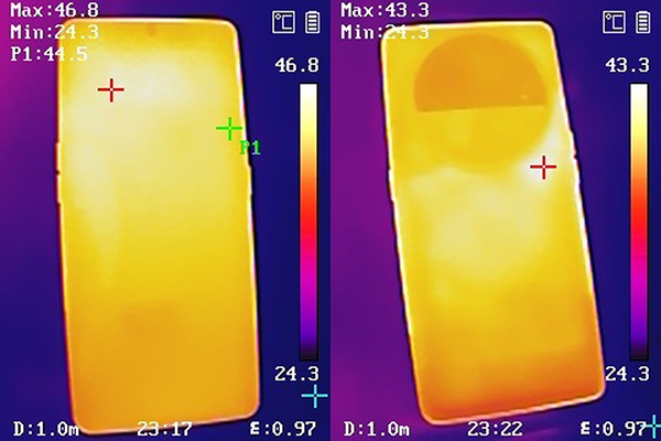 OPPO Find X6 Pro在半小時(shí)的《和平精英》游戲?qū)趾?,測(cè)量到的機(jī)身最 高溫度為43℃。